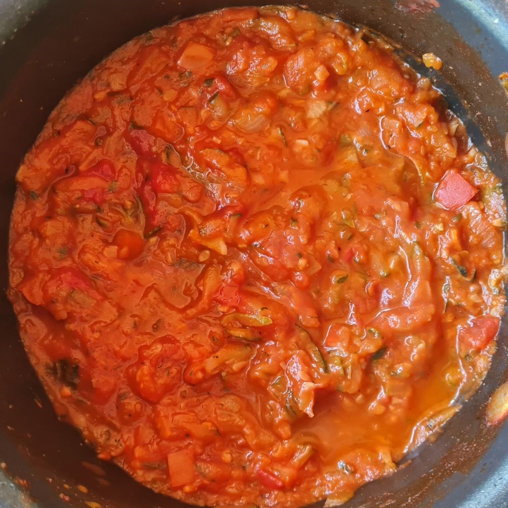 - 3 tomater i tern (eller en dåse hakkede tomater)